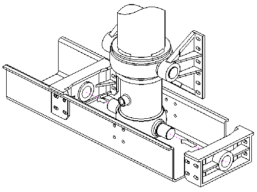 將第2個油缸支座安裝到支撐架上,并且調(diào)整油缸位置,確保油缸和底盤在一個中心線上,油缸與支座之間的最大間隙為2毫米,為了保持油缸處于正確位置,可在油缸和油缸支撐架橫梁間插入木契,調(diào)好位置后,擰緊螺栓固定油缸支座。
